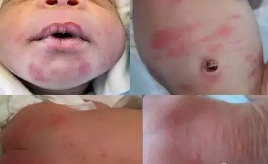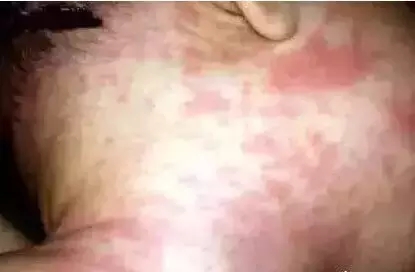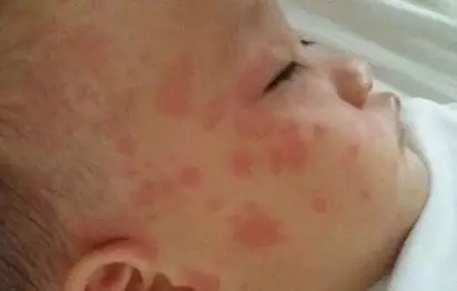 圖中寶寶的風(fēng)團(tuán)已經(jīng)逐漸連成片了
