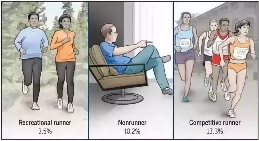 美國《骨科與運動物理治療雜志》還指出,健身跑步者的關節(jié)炎發(fā)生率為3.5%,而久坐不動的人患關節(jié)炎的概率為10.2%!